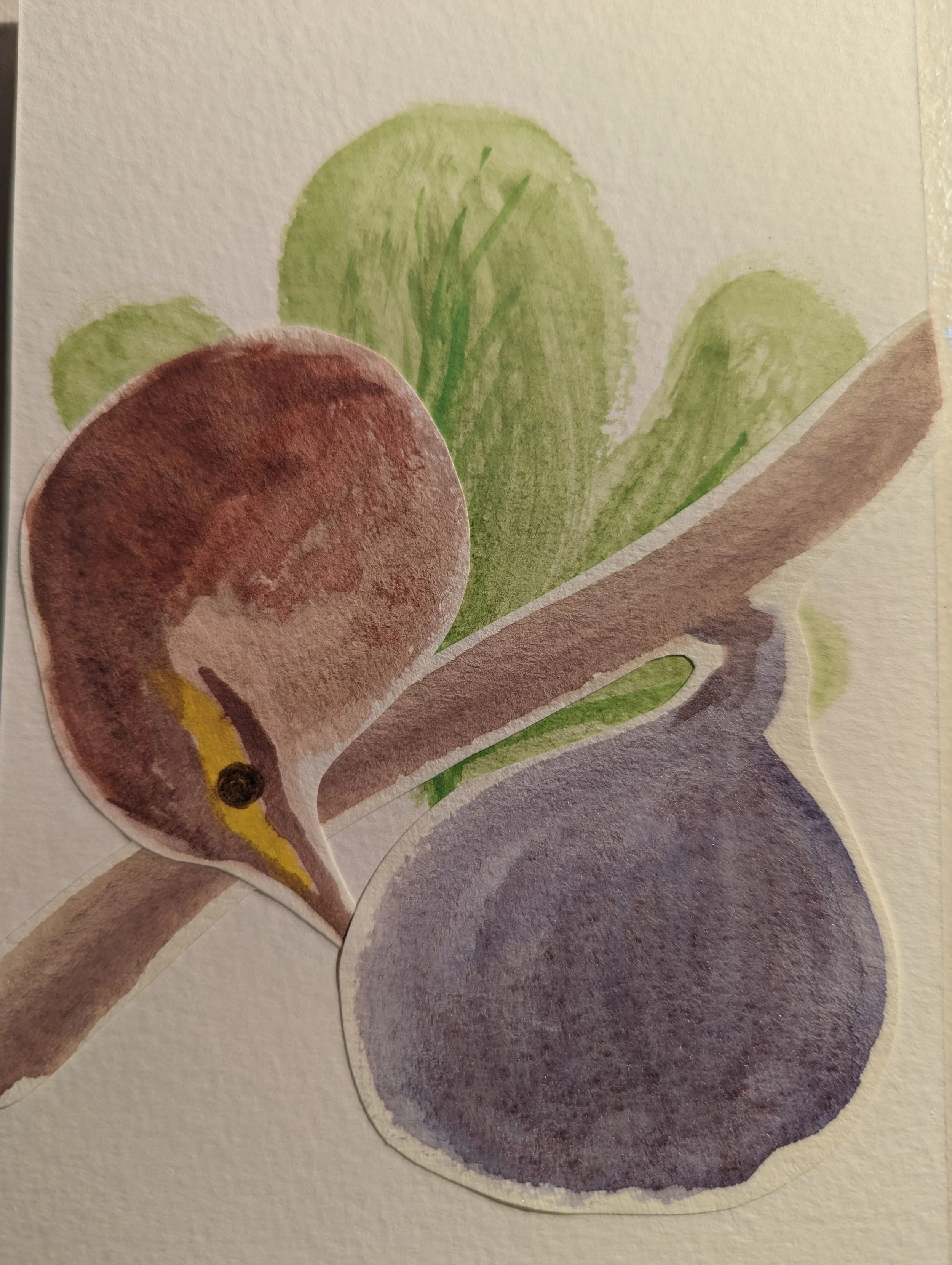 My watercolour painting of a Yellow-Faced Honeyeater enjoying a fig